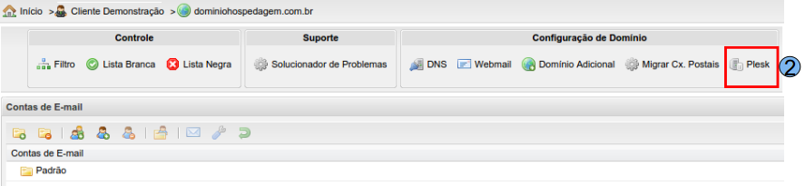 Acesse o Painel de Controle através do endereço: https://painel.provedor.com.br Acesse o domínio ao qual deseja manipular através de um clique duplo (1):