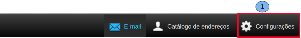 Teste a visualização da imagem acessando no navegador o endereço da imagem. Ex: http://www.domínio.com.br/assinatura/imagem.png. Acesse novamente o Webmail e siga os passos descritos: Clique em “Configurações” (1), após o acesso a configuração clique em “Identidades” (2), e clique na conta do usuário (3).
