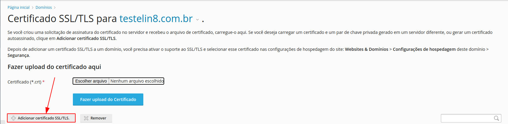 - Agora clique no botão Adicionar o certificado SSL/TLS.