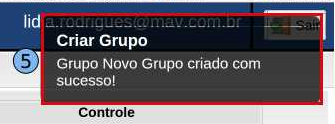 Logo depois, será exibida a mensagem (grupo criado com sucesso) (5).