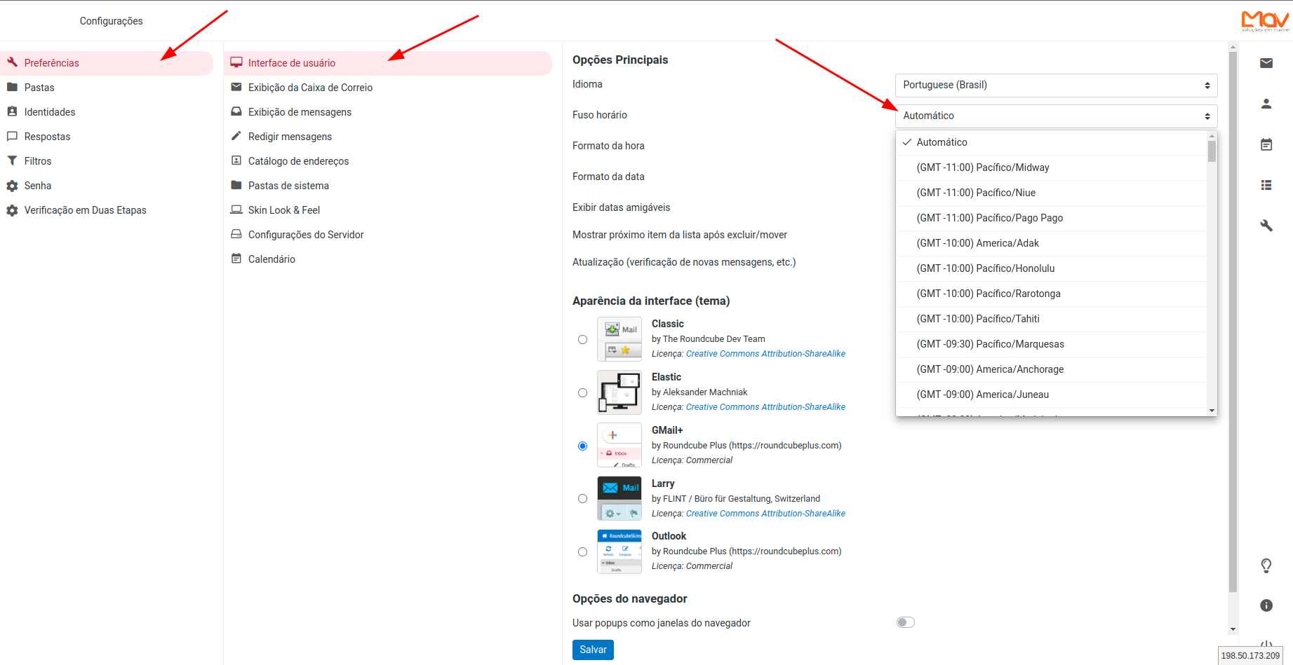Para correção do fuso horário no Webmail realize o seguinte processo: